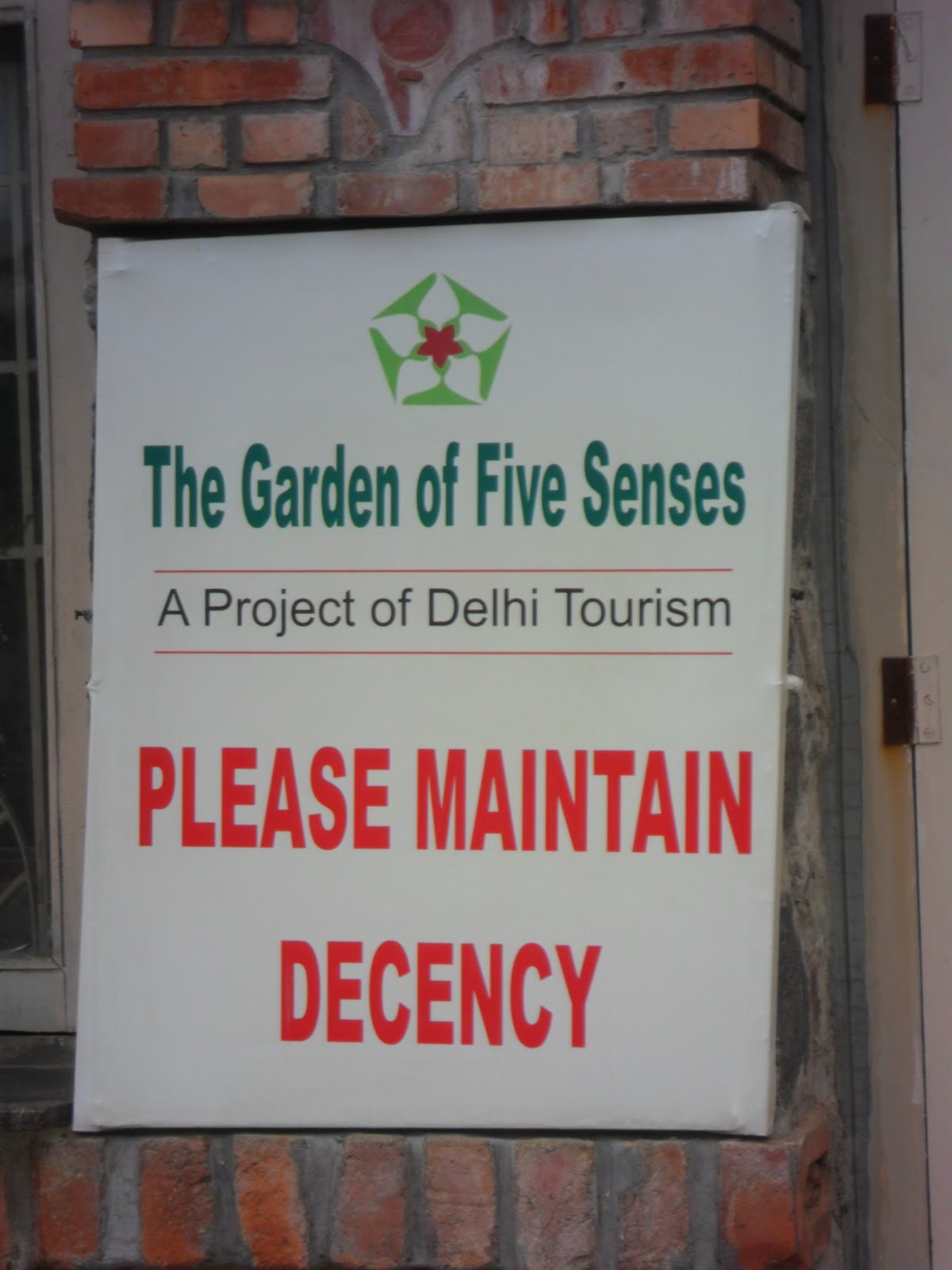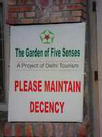 It's a pretty cool place, with lots to see, hear and smell (not sure about taste or touch - well, maybe the latter as indicated in the photo - it's a popular place for young couples to meet!). We stroll around for a couple of hours just enjoying the peace & quiet. We are impressed with the views of Delhi which show that there's a lot of green space throughout the city (forest or similar - quite wild, rather than parkland).