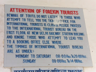 With anger and frustration on our side, we storm the "no entry" staircase at the station (handily, it appears to be time for tea so the guards are not paying much attention). We march through the station but still can't find the Foreign Ticket office, so we ask a passer-by for help. He takes us out a different exit and points us into a ticket office - but we quickly discover that this is for locals, not tourists, and now the security guy on this side won't let us back inside. We're not falling for that again, and stroll casually through an unmanned doorway. FINALLY, we see a sign for the Foreign Ticket office and bolt up the stairs before anyone tries to evict us. Check out the sign in this photo - pity they don't put it outside the station!